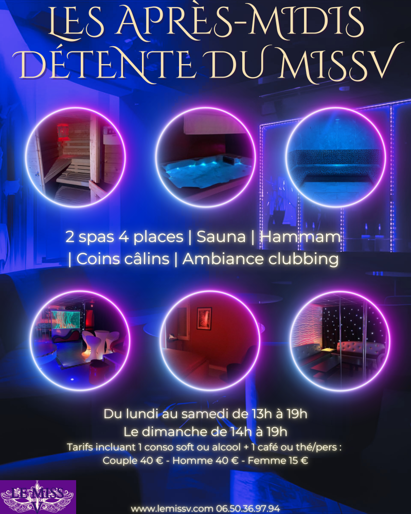 Bienvenue dans votre club Le Miss V, club libertin avec sauna, hammam, spas, piscine chauffée l'été et terrasse